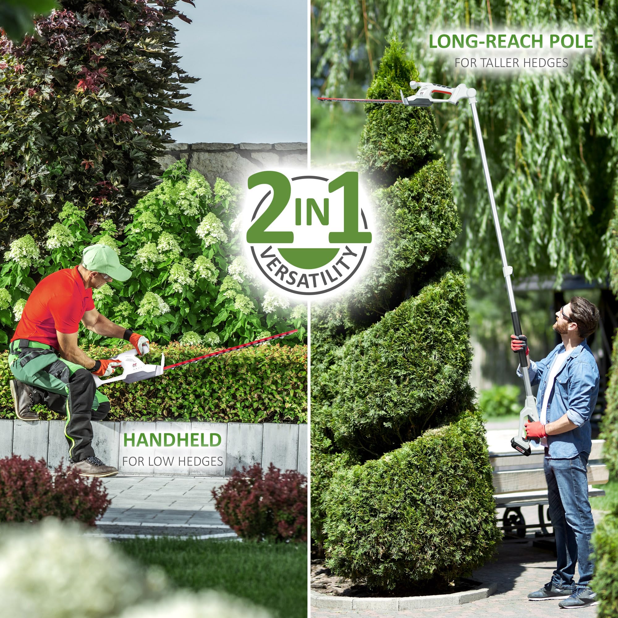 - The 2-in-1 design lets you use it handheld or with the detachable extension pole, adding real versatility for different hedge heights.