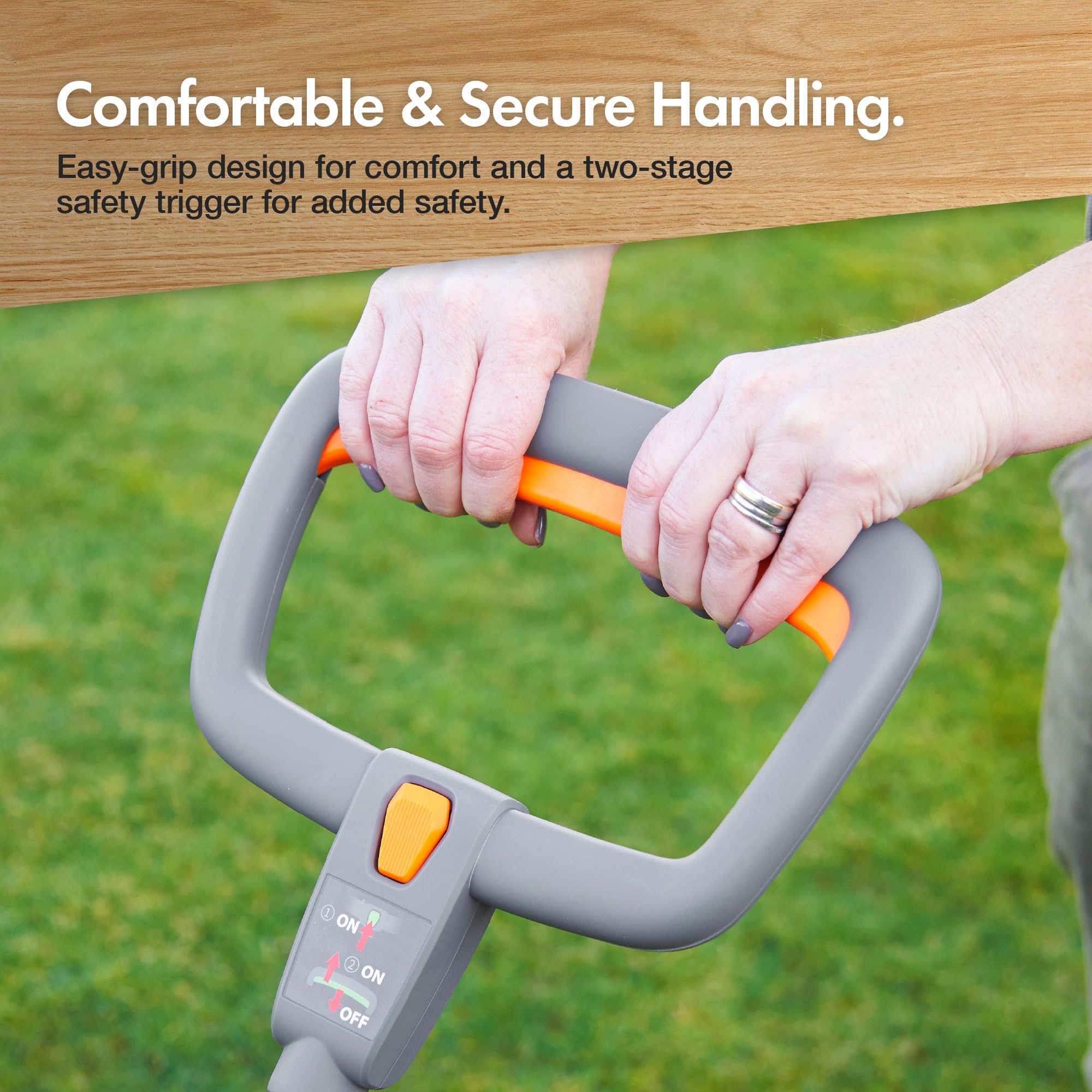 Constructed with durable plastic materials, the mower feels sturdy yet lightweight. However, it’s important to note some users have reported concerns about the longevity of the plastic components, particularly the handle joints, which may wear down with frequent use. Nevertheless, for the price of £134.99 — the current all-time low — the build quality aligns well with expectations for a mini mower.