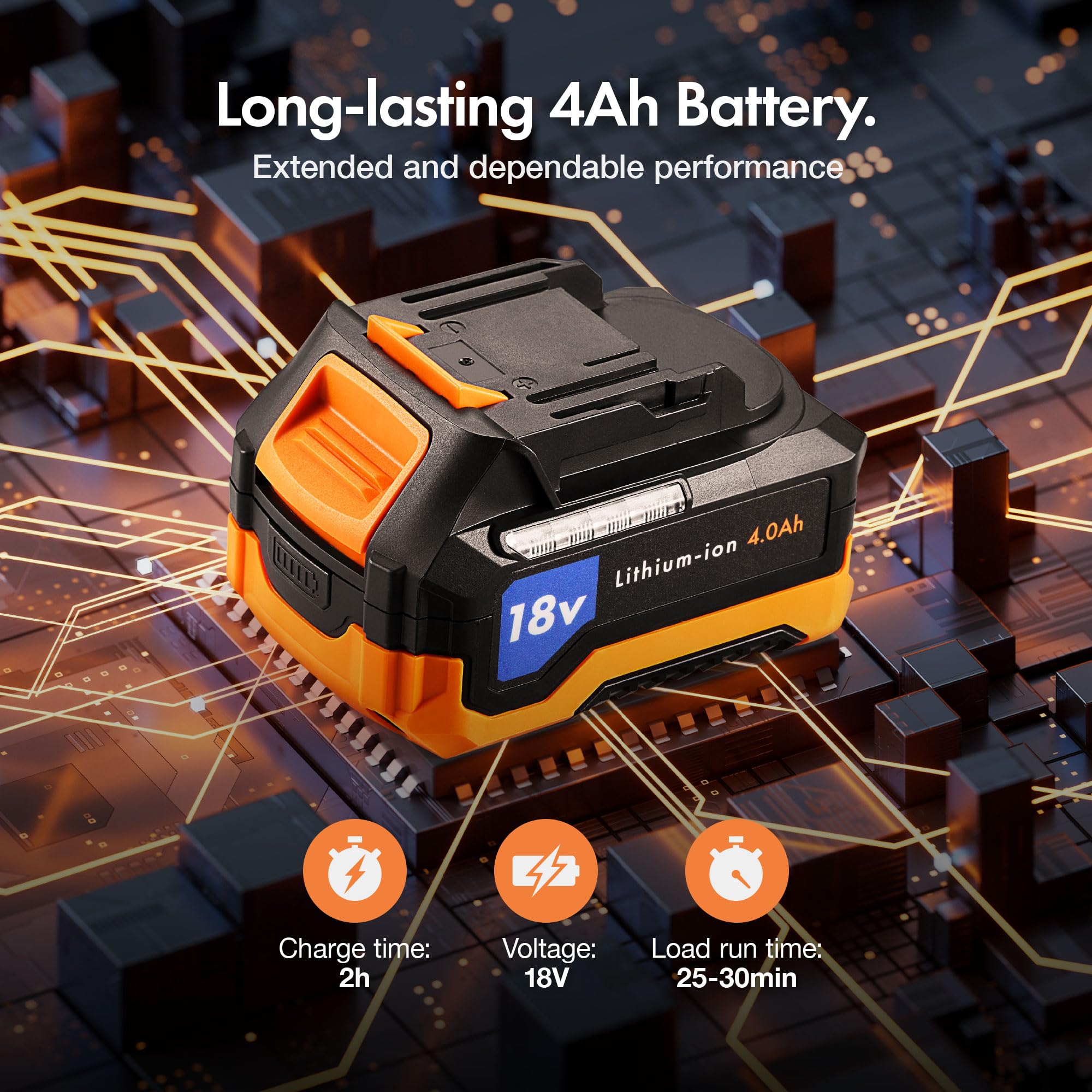- Robust 18V 4Ah battery offers a longer runtime than many similar models.