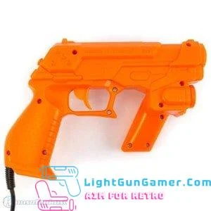 This was the first in the series that did not use the traditional light gun technology. Tvs by the point it was released were moving away from the CRT models that allowed lightguns to work so the GCon3 used a pair of Infra Red LED’s positioned on the television and a camera in the gun itself to work out where you were pointing.