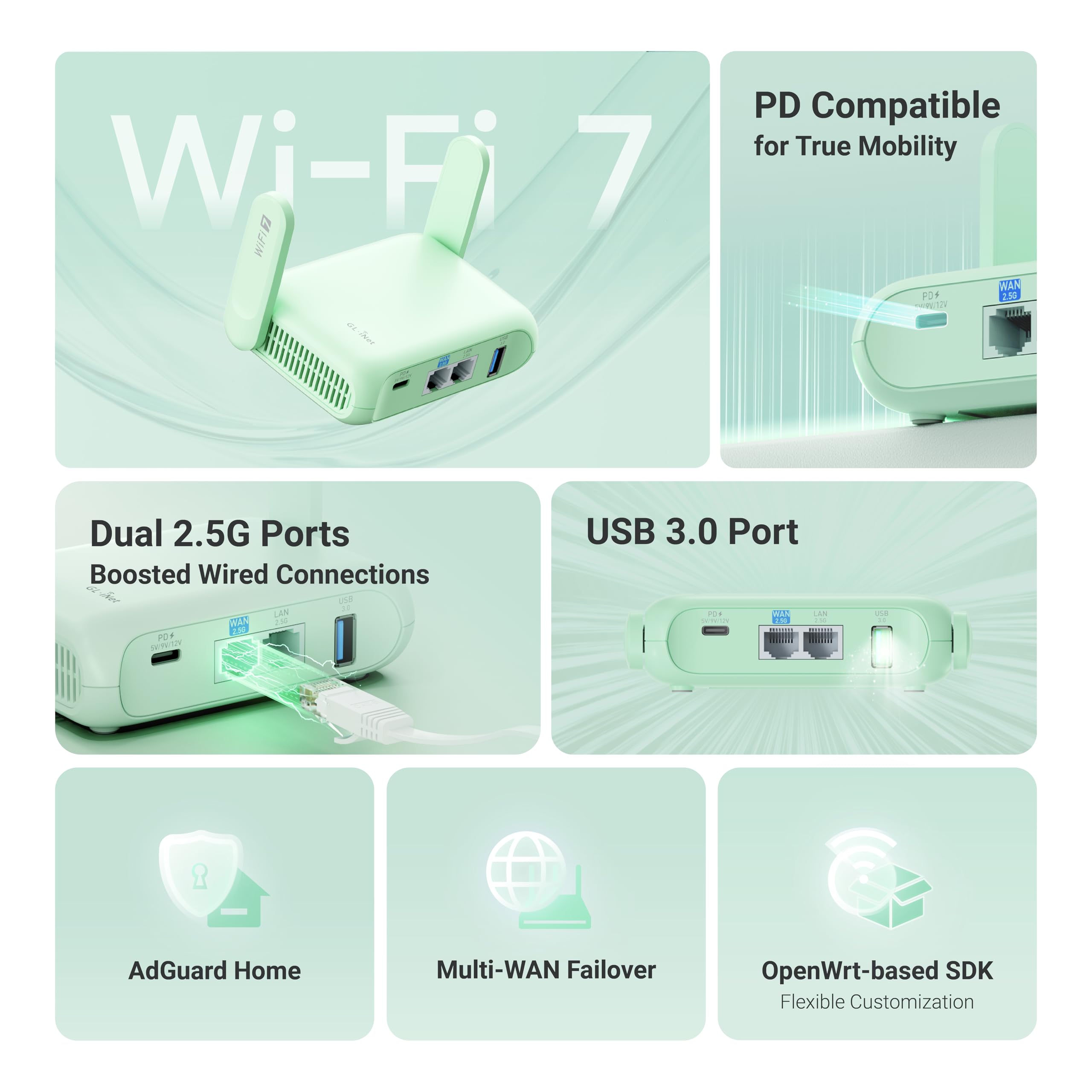 Upon unboxing, the Beryl 7 impresses with its compact design—perfect for slipping into a laptop bag or even a pocket. It supports dual-band Wi-Fi 7, delivering speeds up to 688 Mbps on 2.4GHz and an astounding 2882 Mbps on the 5GHz band. This capability ensures that whether you're streaming videos or engaging in online meetings, you'll have a reliable connection.