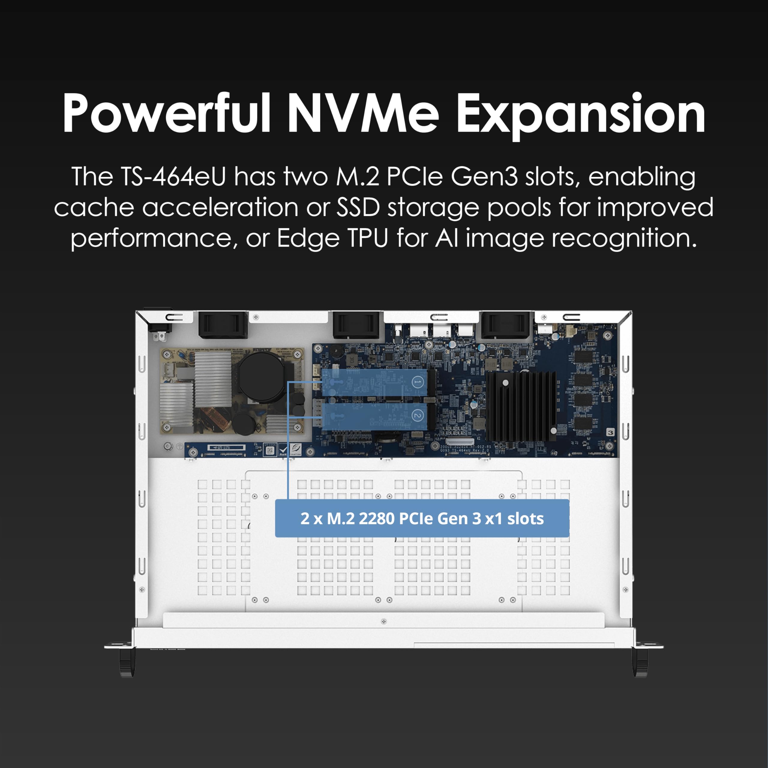 - Two M.2 PCIe Gen 3 x1 slots for NVMe SSD caching to enhance I/O performance.
