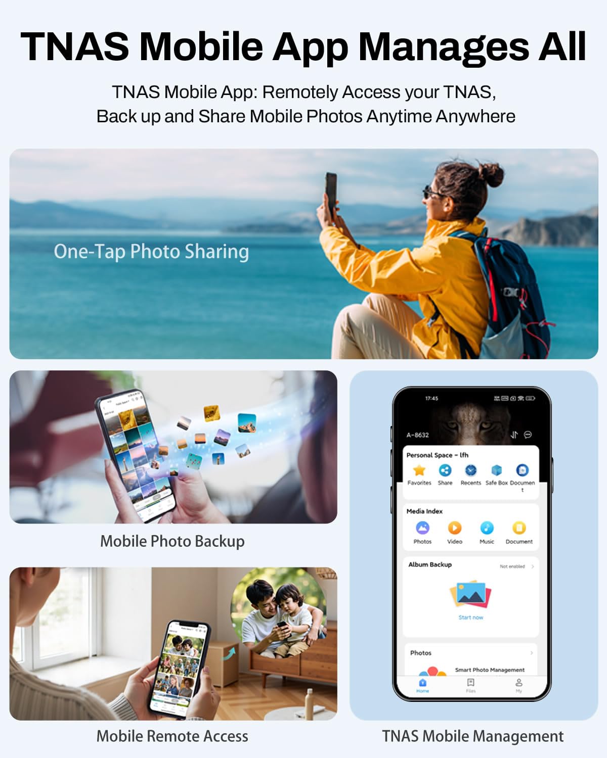 The TNAS Mobile app facilitates the NAS setup process without requiring a PC, which is a significant advantage for users who prefer mobile management. Additionally, the support for 50+ independent user accounts allows for flexible access control, making it ideal for families or shared environments.