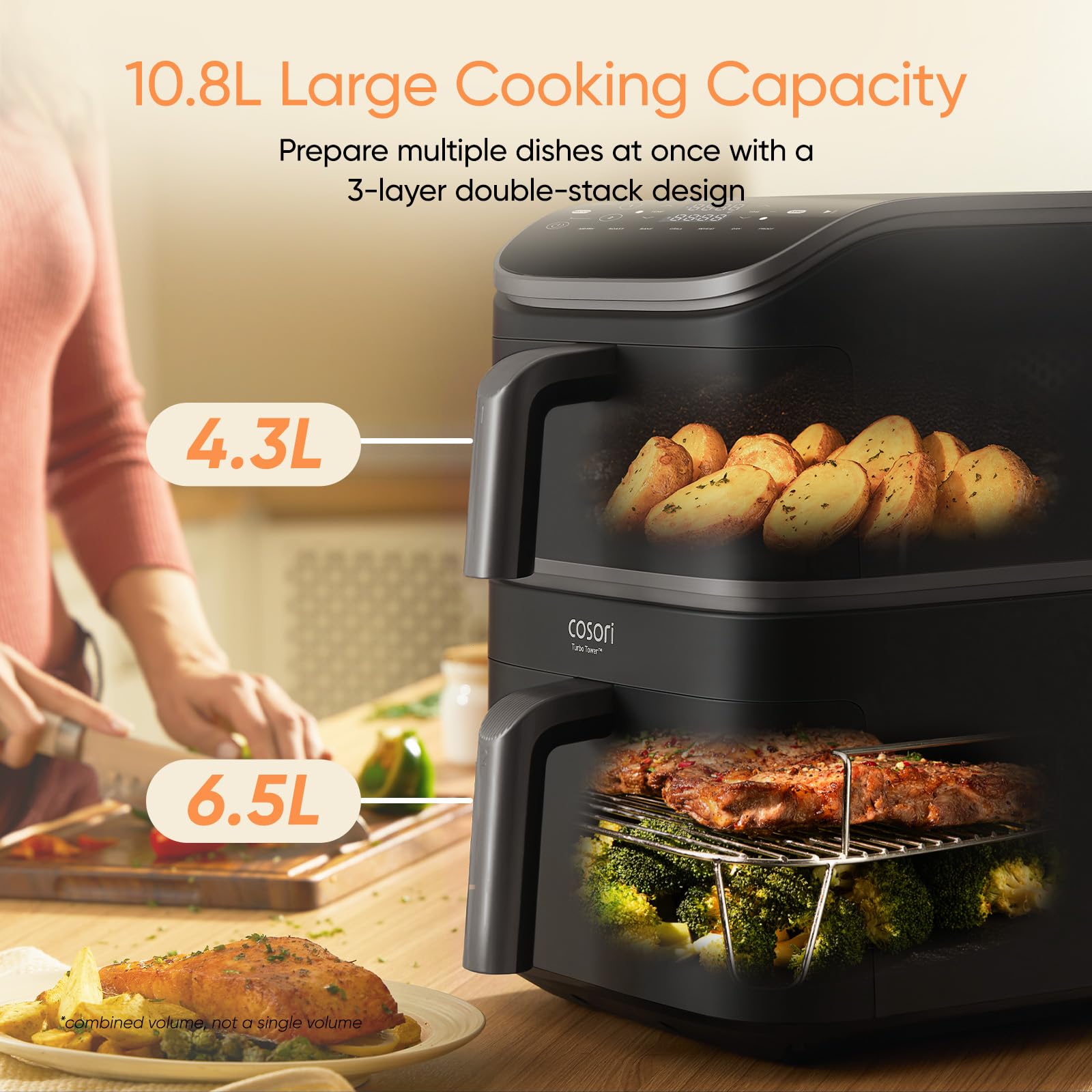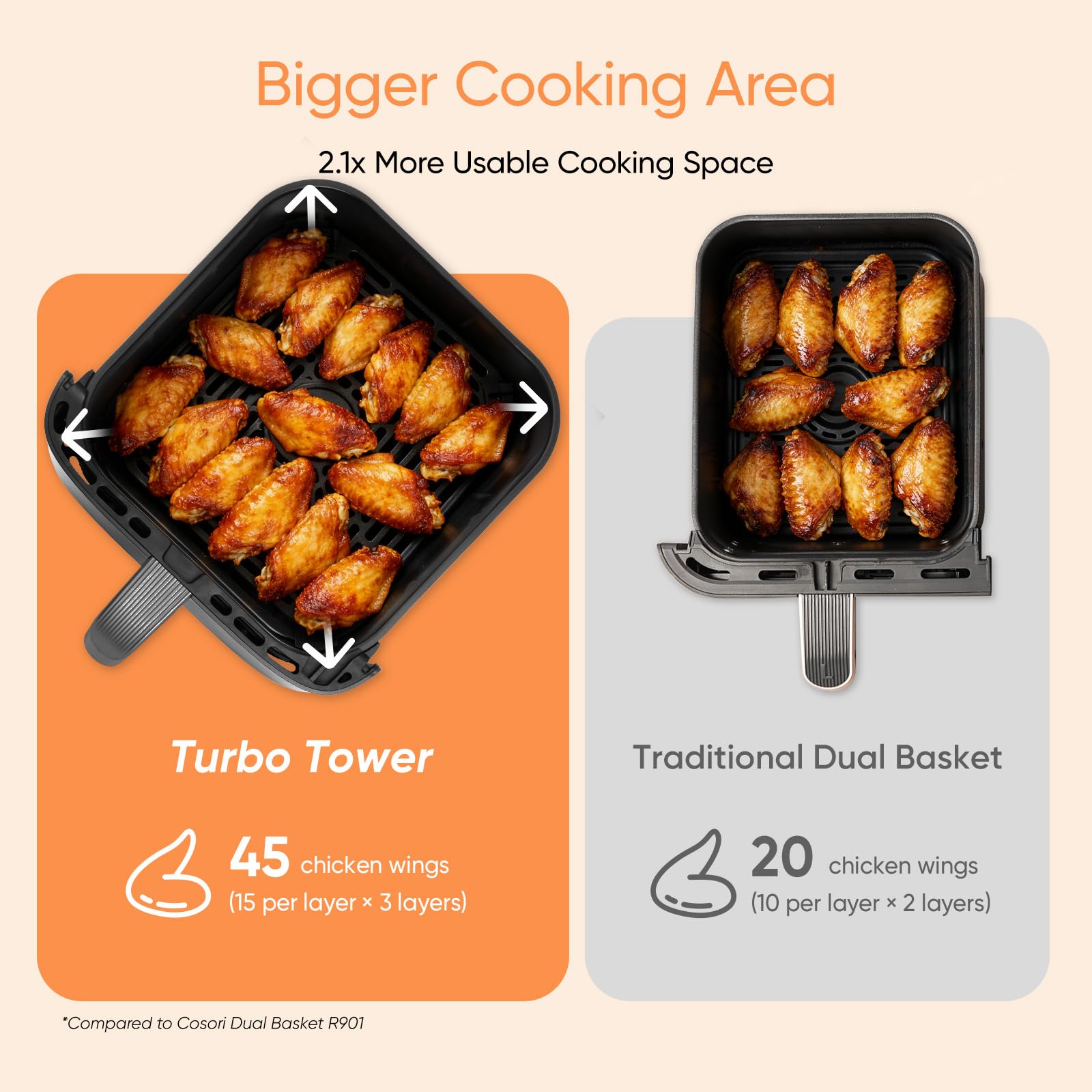In summary, the Cosori TurboTower Dual Air Fryer is a game-changer for anyone looking to cook delicious, healthy meals without compromising on space or time. Ideal for families or those who frequently entertain, it may not be the best fit for individuals who only need to prepare small portions. Its impressive performance, energy efficiency, and current unbeatable price make it a top choice for upgrading your kitchen appliances.