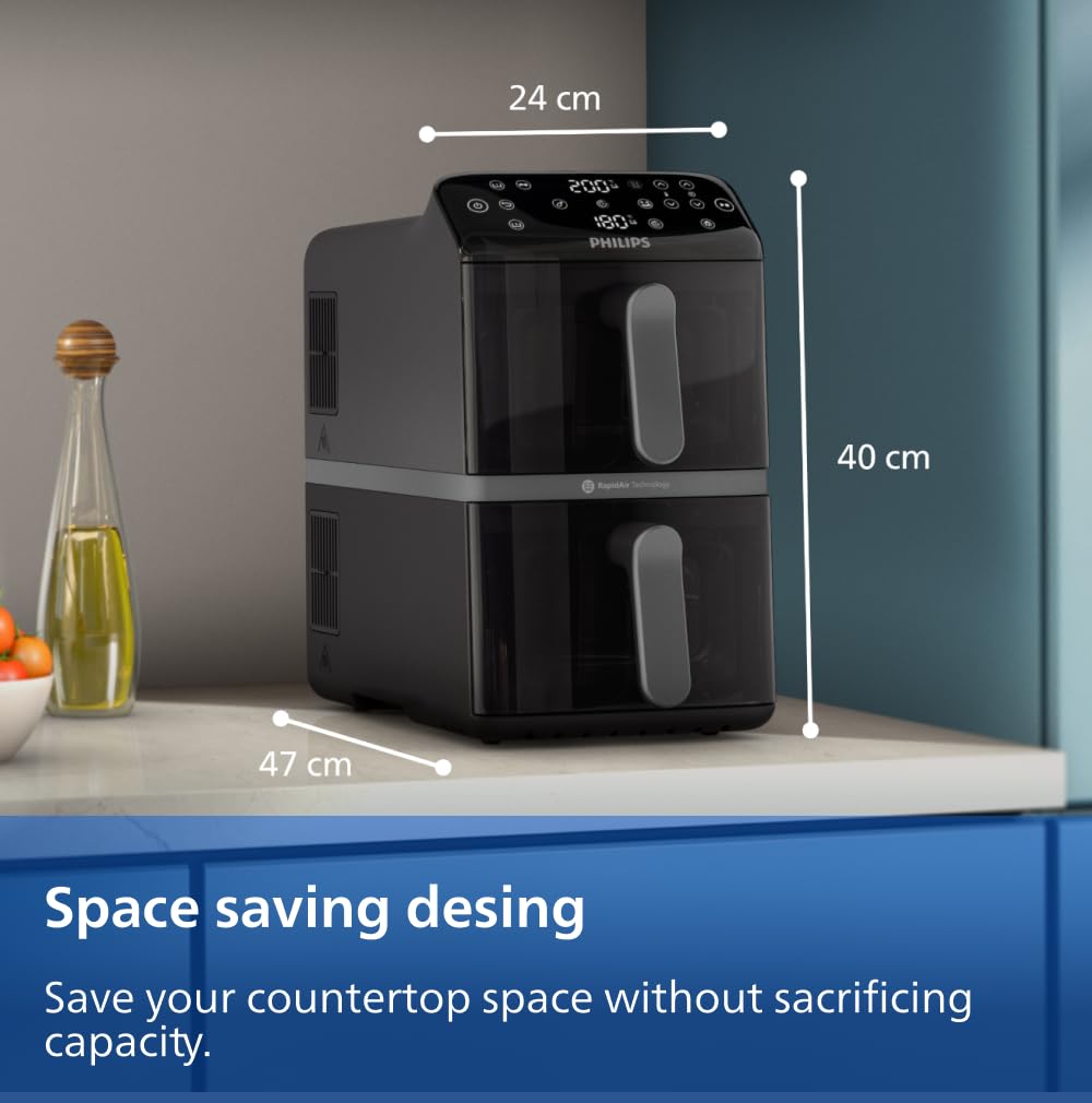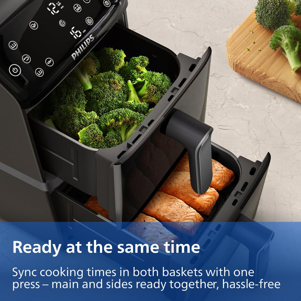 For families looking to streamline meal preparation while enjoying healthier cooking options, the Philips 4000 Series Stacked Dual Basket Airfryer is an outstanding choice. However, individuals or couples with limited cooking needs may find it larger than necessary.