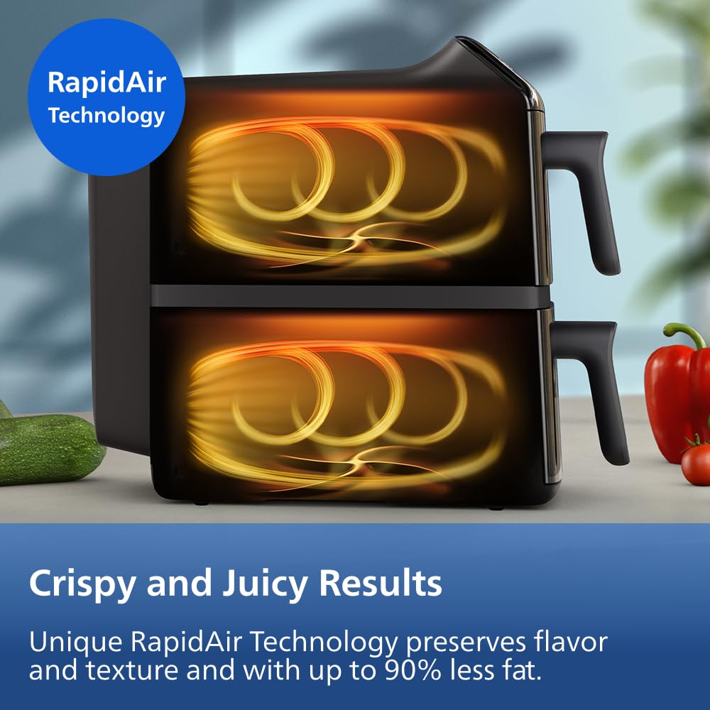 - Uses Vertical RapidAir Technology for healthier cooking with up to 90% less fat.