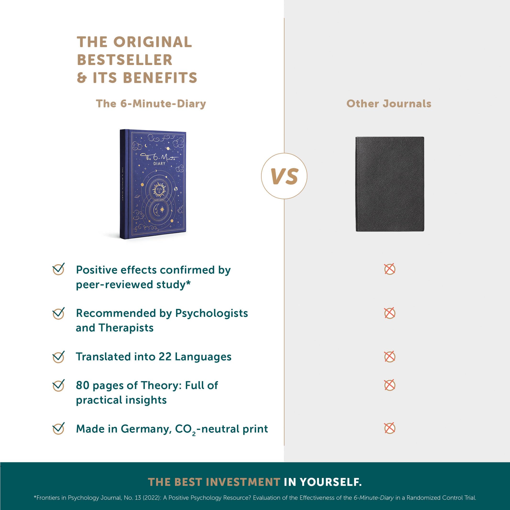 Gift Potential: With its elegant design and positive focus, the 6-Minute Diary stands out as a thoughtful gift for friends and family who may benefit from enhanced mindfulness and self-care practices.