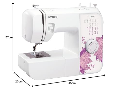 Upon unboxing the Brother AE2500, you’ll notice its user-friendly design that appeals to both novices and those returning to sewing after a hiatus. The machine is compact enough to fit in smaller workspaces, making it ideal for home sewing enthusiasts. Its sleek appearance combined with bright LED lighting gives it a modern touch, ensuring you can sew even in dim lighting without straining your eyes.