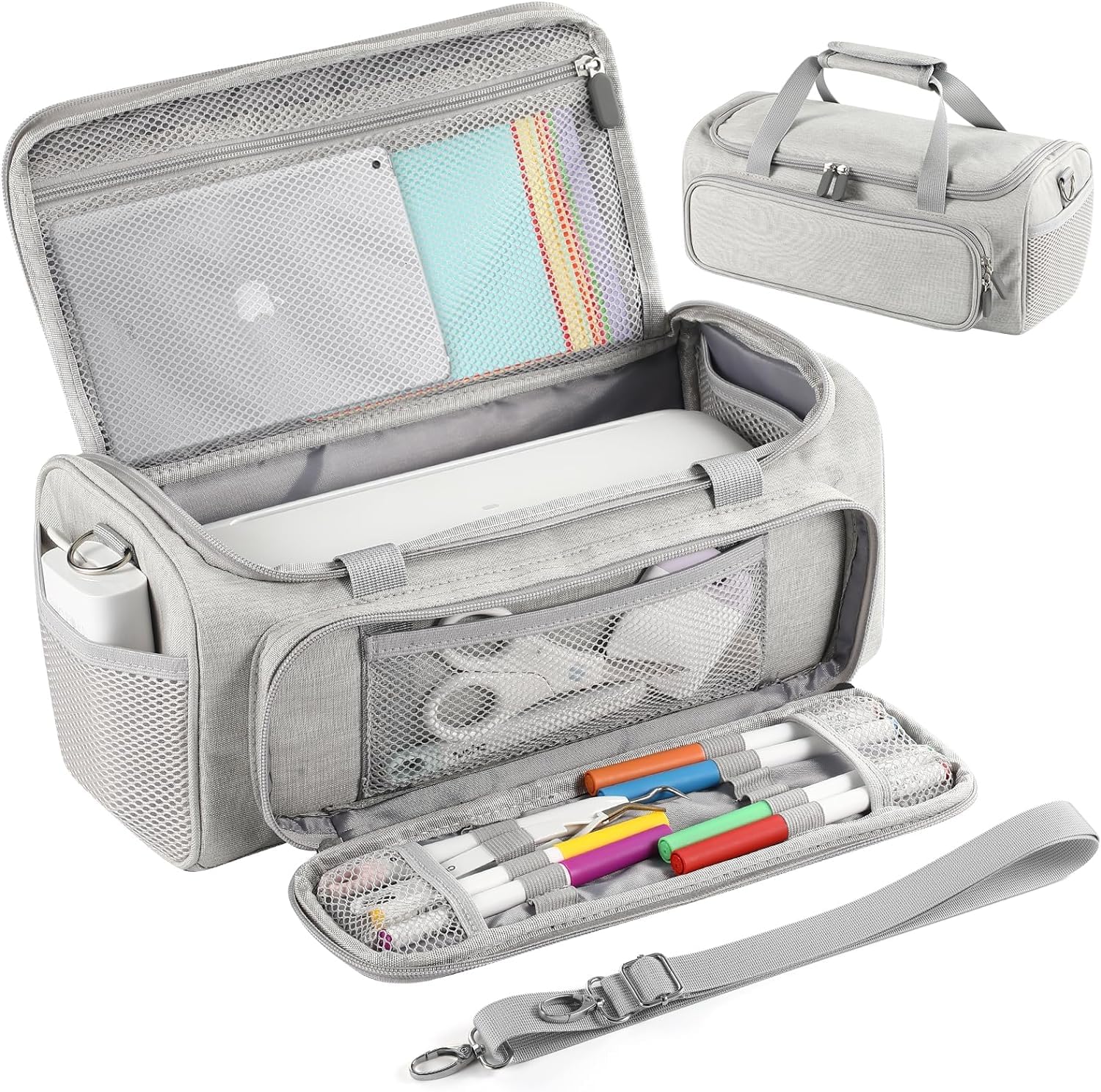 The carrying case is thoughtfully designed with plenty of compartments. It features a large mesh pocket, two side pockets, an internal mesh pocket, and a front pocket, allowing you to organize your Cricut tools efficiently. This multifunctionality is a big plus — you can store everything from blades to transfer tools without worrying about misplacing them. Additionally, the reinforced handles and detachable adjustable shoulder strap make carrying this case a breeze, whether you're heading to a crafting party or just moving it around the house.