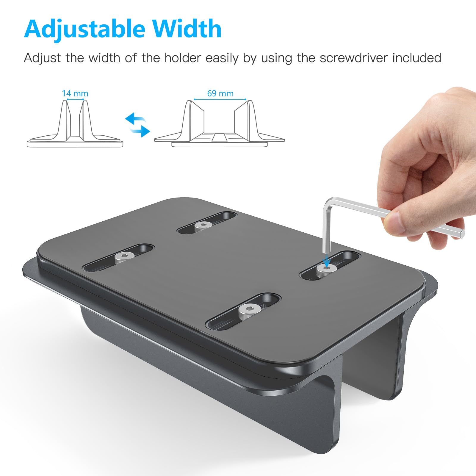 - Adjustable width accommodates laptops up to 17.3 inches, ensuring versatility.