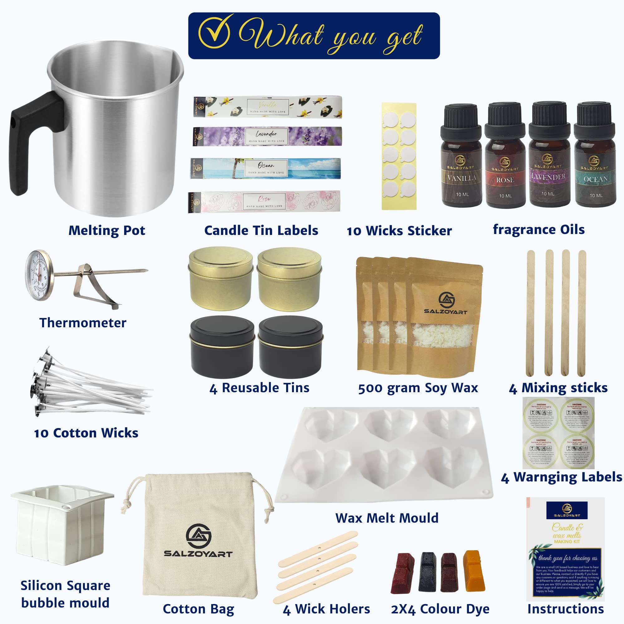 - Includes everything needed for both candle and wax melt making, enhancing versatility.