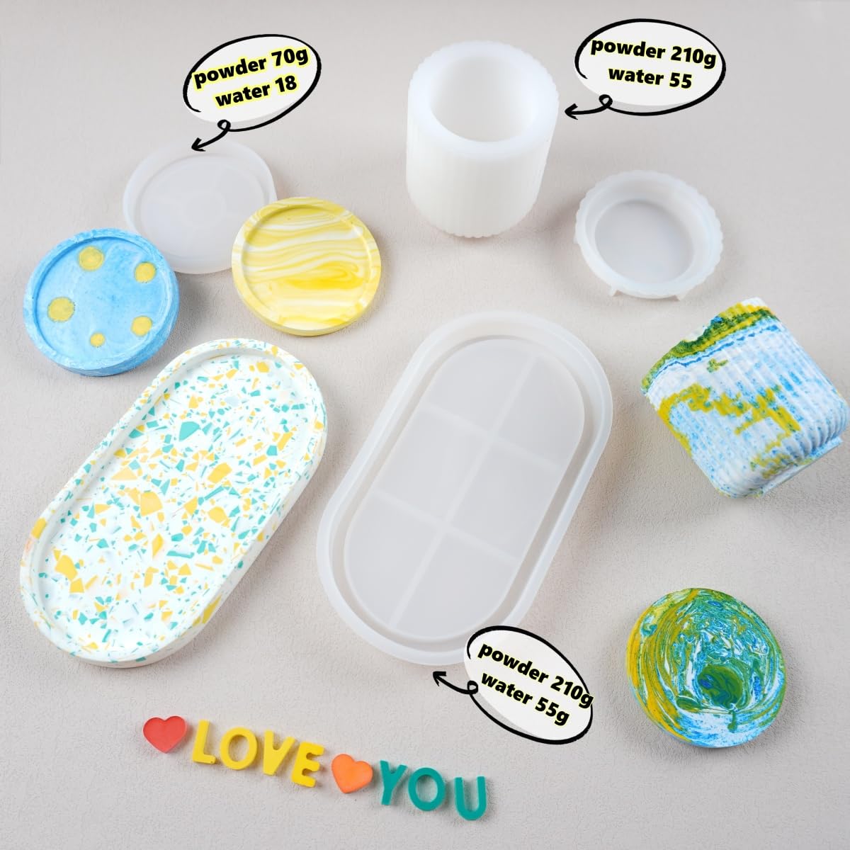 The Wealike kit stands out due to its complete eco-resin formula, made with non-toxic materials. This water-based premium plaster compound allows artists to create beautiful pieces without compromising safety. The kit includes 3 silicone molds and 6 vibrant pigments, providing a wide range of creative possibilities. With a demolding time of just 20-30 minutes, users can quickly see their creations come to life, facilitating a smooth workflow for those eager to explore their artistic potential.