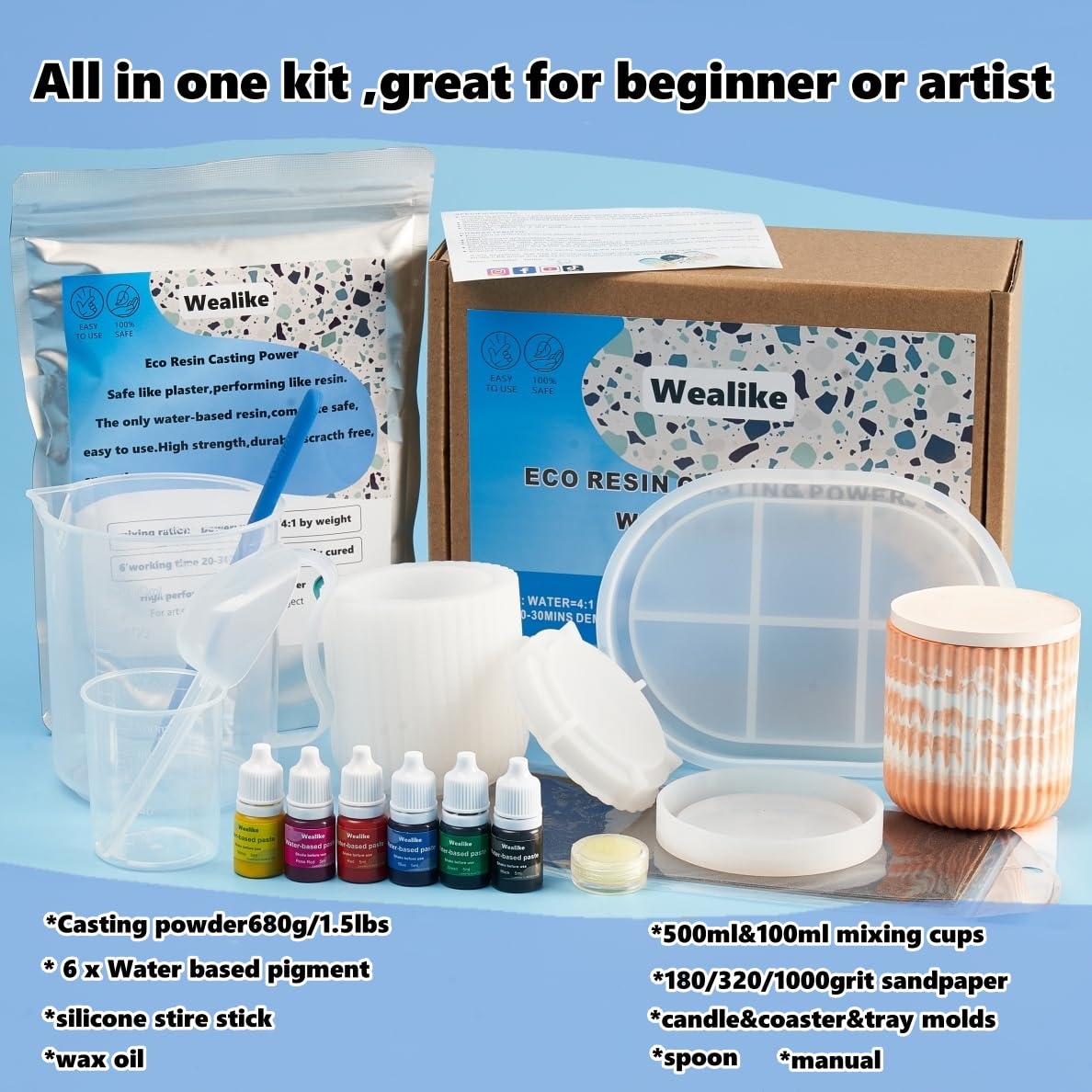 The Wealike Casting Powder Starter Kit is an excellent investment for anyone looking to explore resin art and casting. With its eco-friendly materials, quick demolding time, and professional-grade finish, it is ideal for both beginners and experienced artists. However, those who are entirely new to crafting may need to invest some time in learning the techniques to achieve the best results.