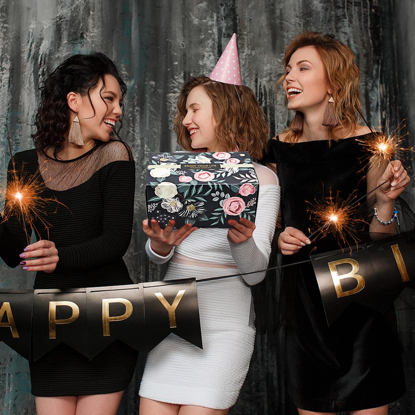 The set includes an array of 12 popular floral fragrances: spring, lemon, gardenia, lavender, Parisian café, figs, rosemary, freesia, and French vanilla. This diverse selection is perfect for various moods and occasions. The candles are housed in exquisite glass holders that not only enhance their aesthetic appeal but also serve as decorative pieces once the candles have burned down.