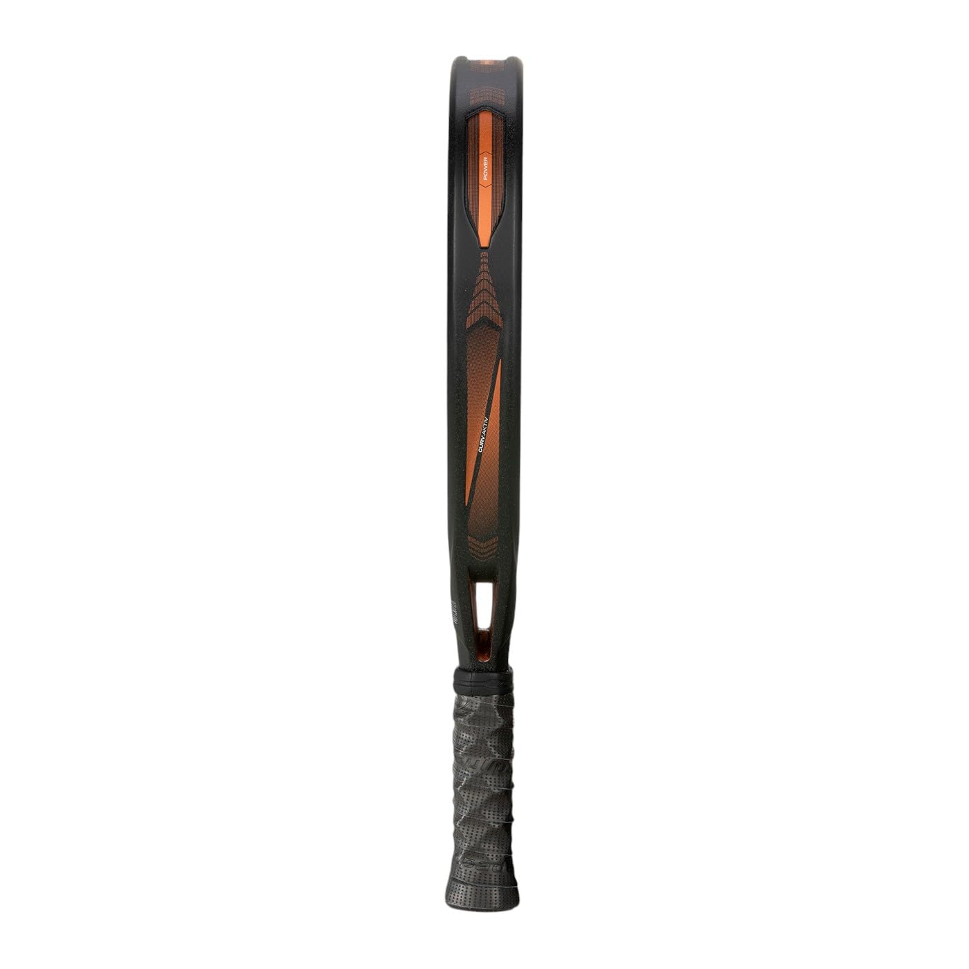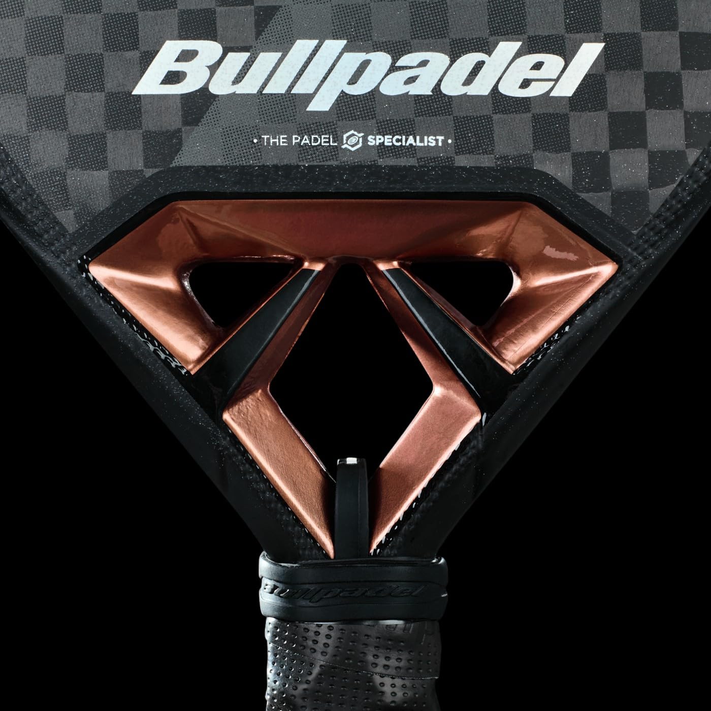 The first thing that grabs your attention is the sleek design, featuring a dark grey and orange color scheme that looks both modern and aggressive on the court. The diamond head shape is designed for players looking for maximum power, while the 38 mm profile enhances stability during play. It’s clear that Bullpadel has crafted this racket with serious players in mind.