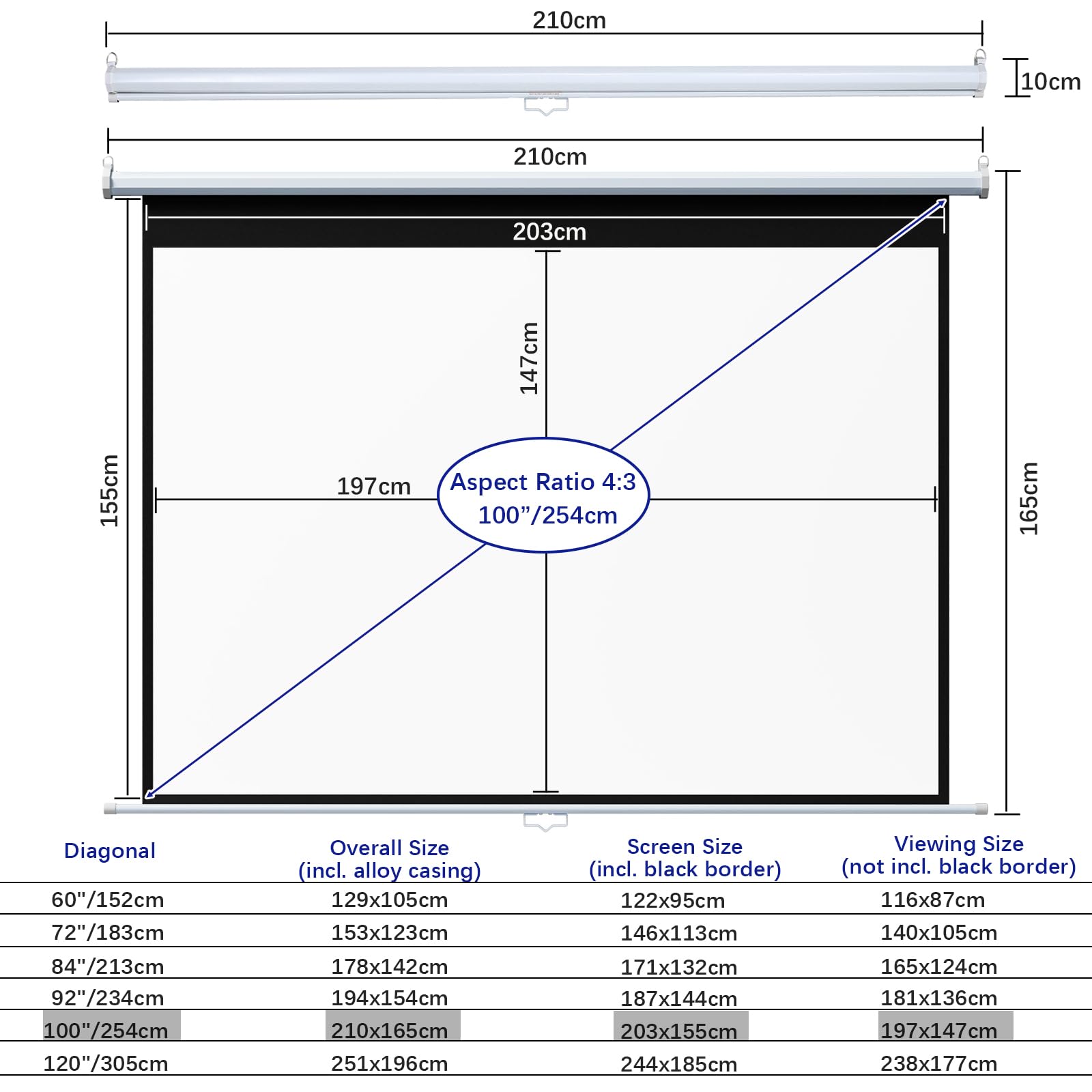 The INMOZATA screen features a 4:3 aspect ratio with a diagonal size of approximately 100 inches, translating to a display area of 203 x 152 cm. It supports a remarkable high gain ratio of 1:1, making it compatible with 3D, 1080P, 4K, and Full HD content. This versatility is impressive, especially at this price point, as many screens in this range may not support such high-definition outputs.
