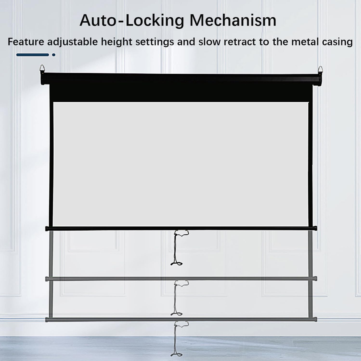 The INMOZATA screen features a 1.1 high gain ratio, making it suitable for a variety of resolutions, from standard 1080P to lush 4K visuals. Its versatility in supporting 3D content allows for a fully immersive viewing experience. The auto-locking system is a standout feature, allowing you to set the screen at various heights, making it adaptable for different room sizes and setups.