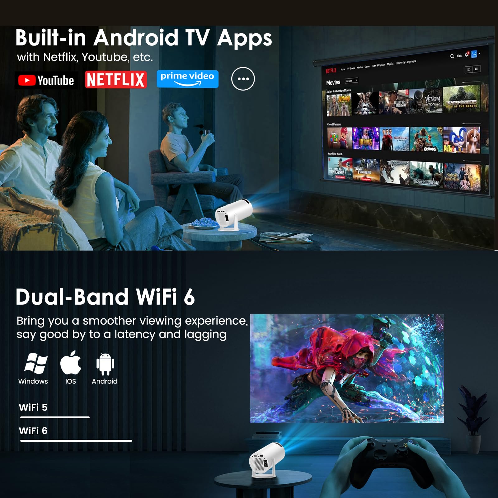 【Netflix Included/Dolby Audio】Smart 4K Projector,1200ANSI FHD 1080P Portable Projector,HDR10 Short Throw Auto Focus/Keystone WiFi6 Bluetooth 50% Zoom Home Cinema Projectors for Bedroom,Outdoor,Gifts