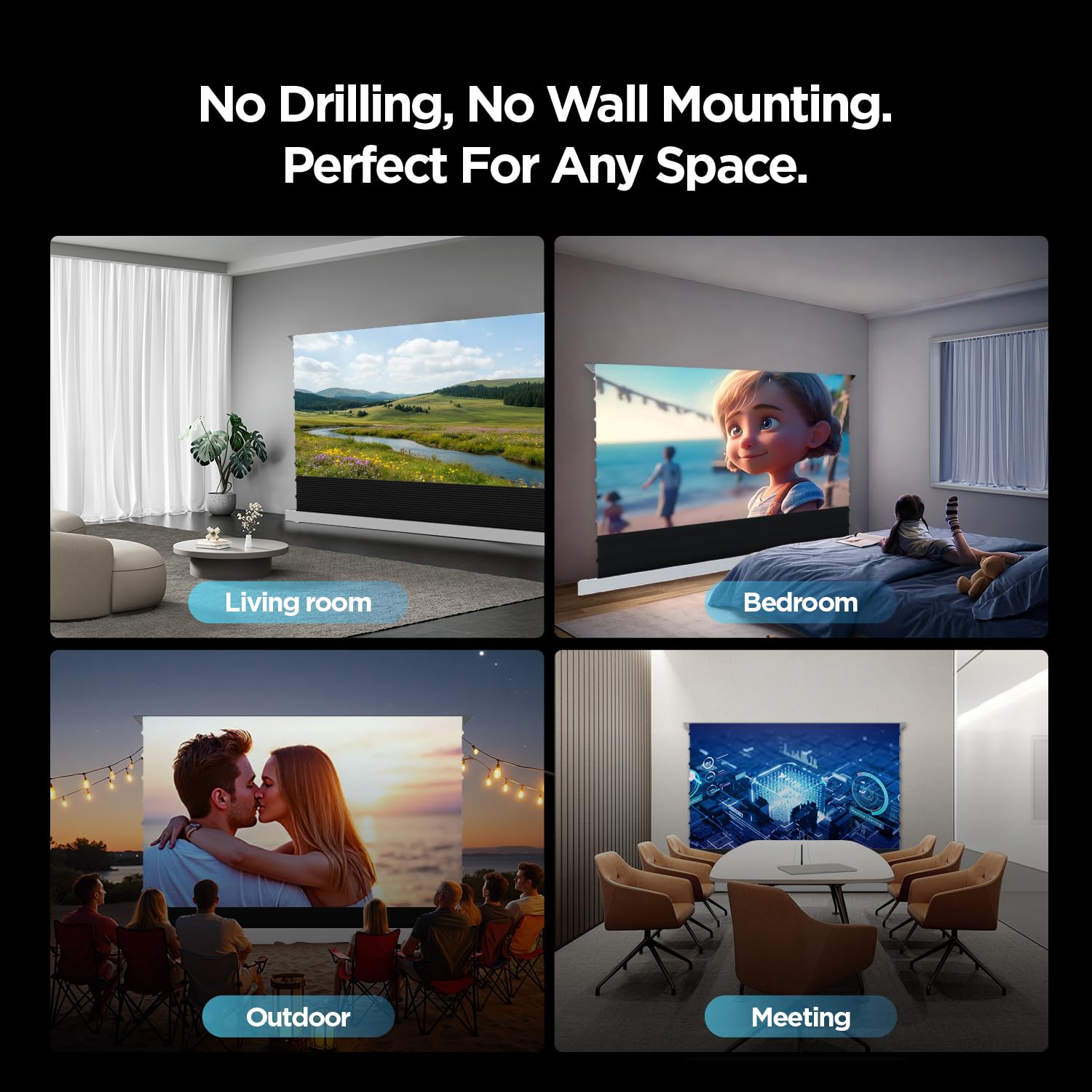 The NothingProjector screen is designed for zero installation; it rises from the floor with a remote, making it user-friendly and convenient.
