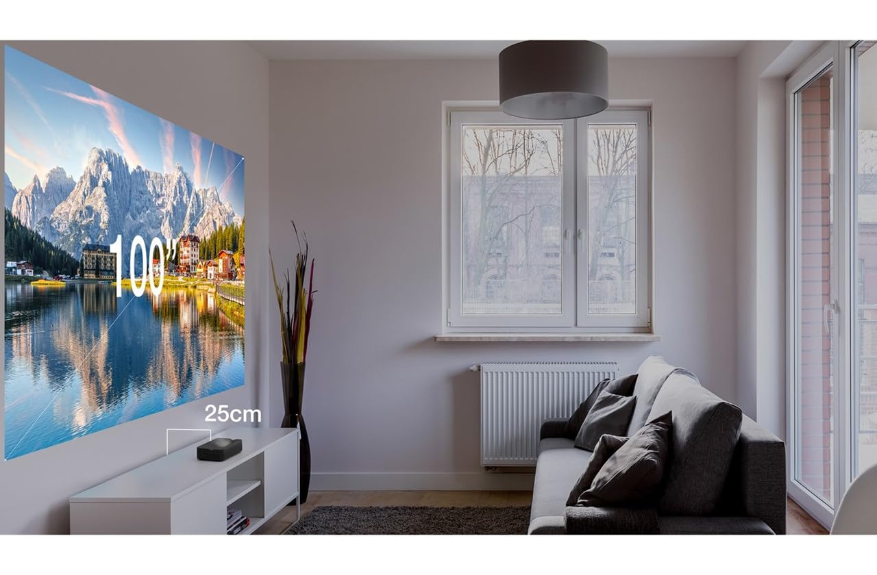 - Ultra-short-throw capability allows a massive 100-inch display from just 25cm away.