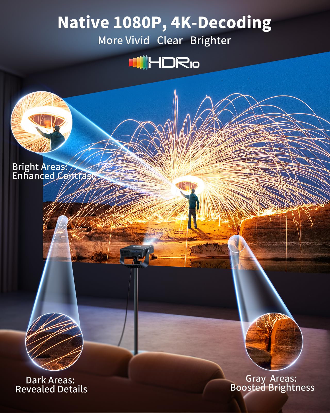 - Native 1080p resolution with 4K decoding for sharp visuals.