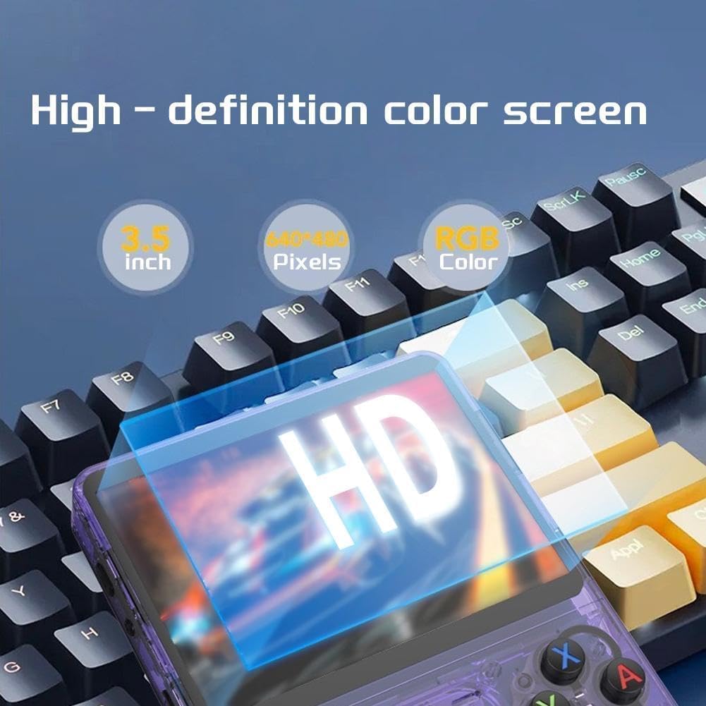R36S Retro Handheld Game Console with 3.5" IPS Display, 64/128GB and 21,000+ Classic Games, Open Source Linux System, Screen Portable Pocket Video Player (Purple-128G)
