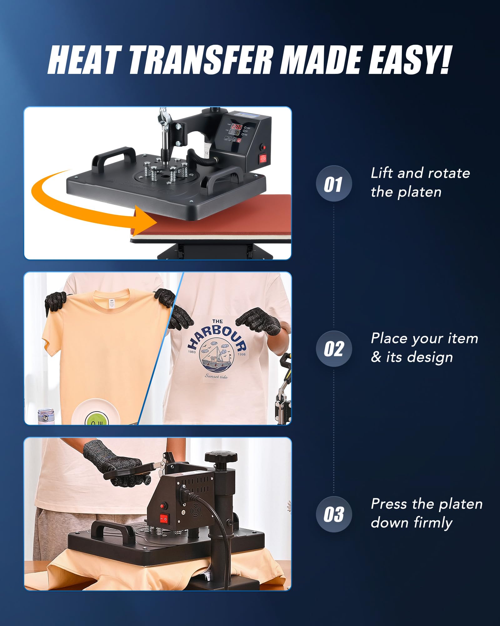 - 1250W power and up to 250°C provide enough heat range for a wide variety of transfer jobs.