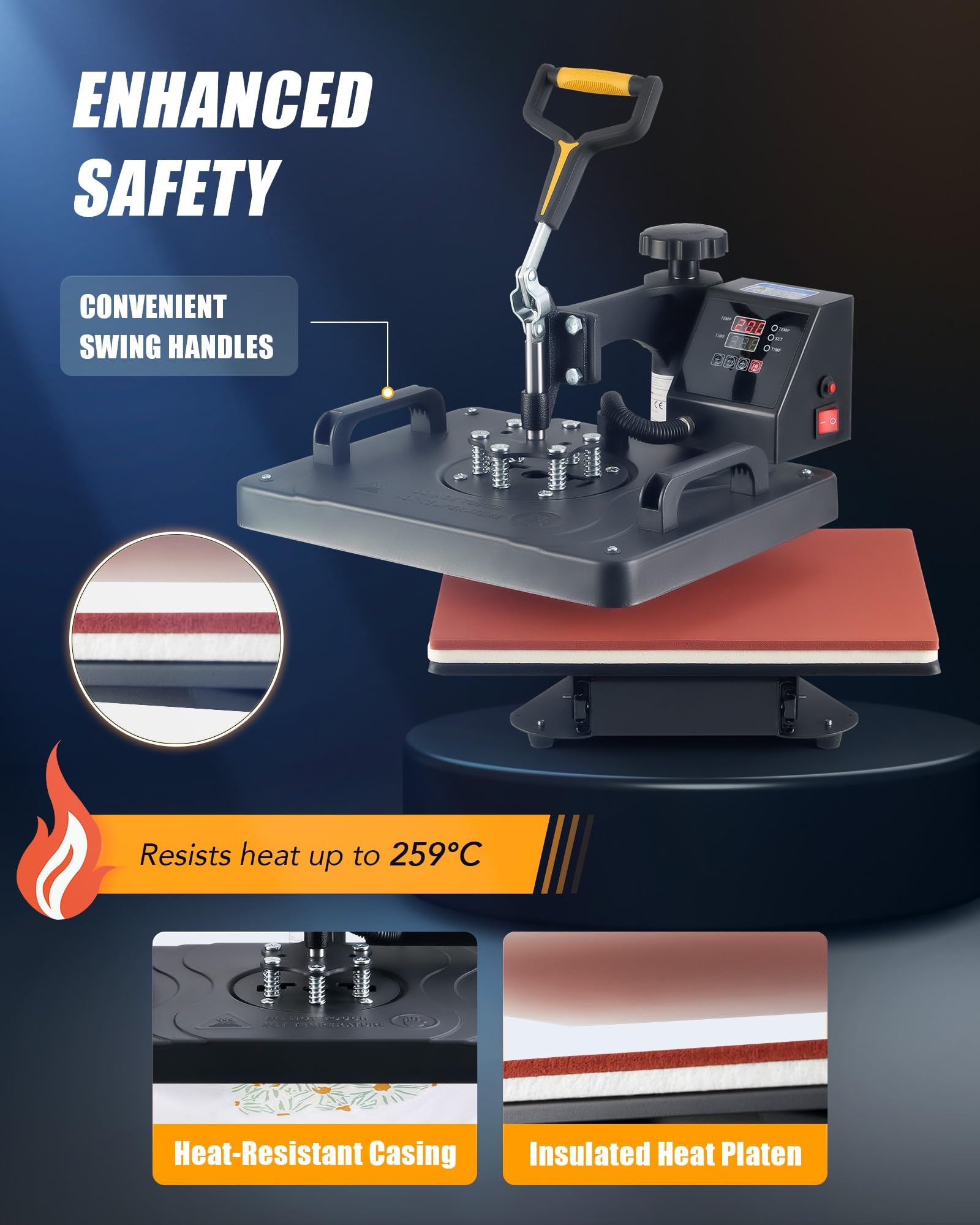 Buyers most often seem to love the all-in-one convenience, with the 8-in-1 attachments making the machine useful for a wide range of craft and small-business projects. The 30x38cm platen, 250°C maximum temperature and swing-away layout are the other features most likely to earn praise because they make the press feel practical and flexible.