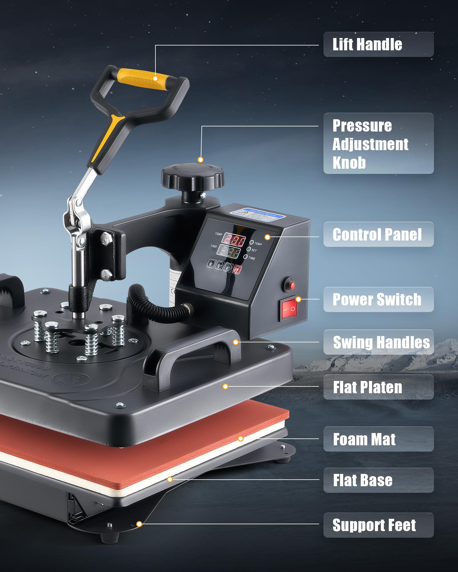 - The 8-in-1 setup covers shirts, caps, mugs, plates, masks, coasters, puzzles and more, so one machine can handle many projects.