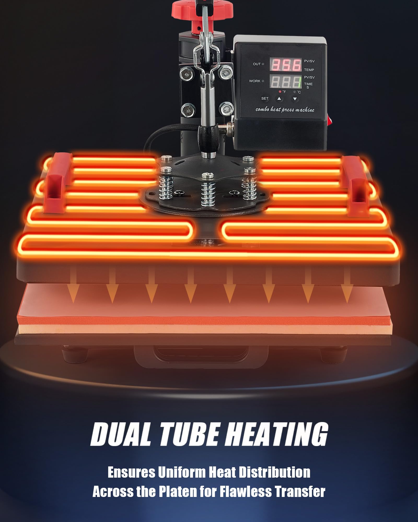 CREWORKS 30x38cm 8-in-1 Heat Press Machine Professional Swing Away T-Shirt Heat Press for Clothes Cup Hat Mask Cap Plate Mouse Pad Tote Bag Pillow Case Coaster Puzzle and Home Charity or Business