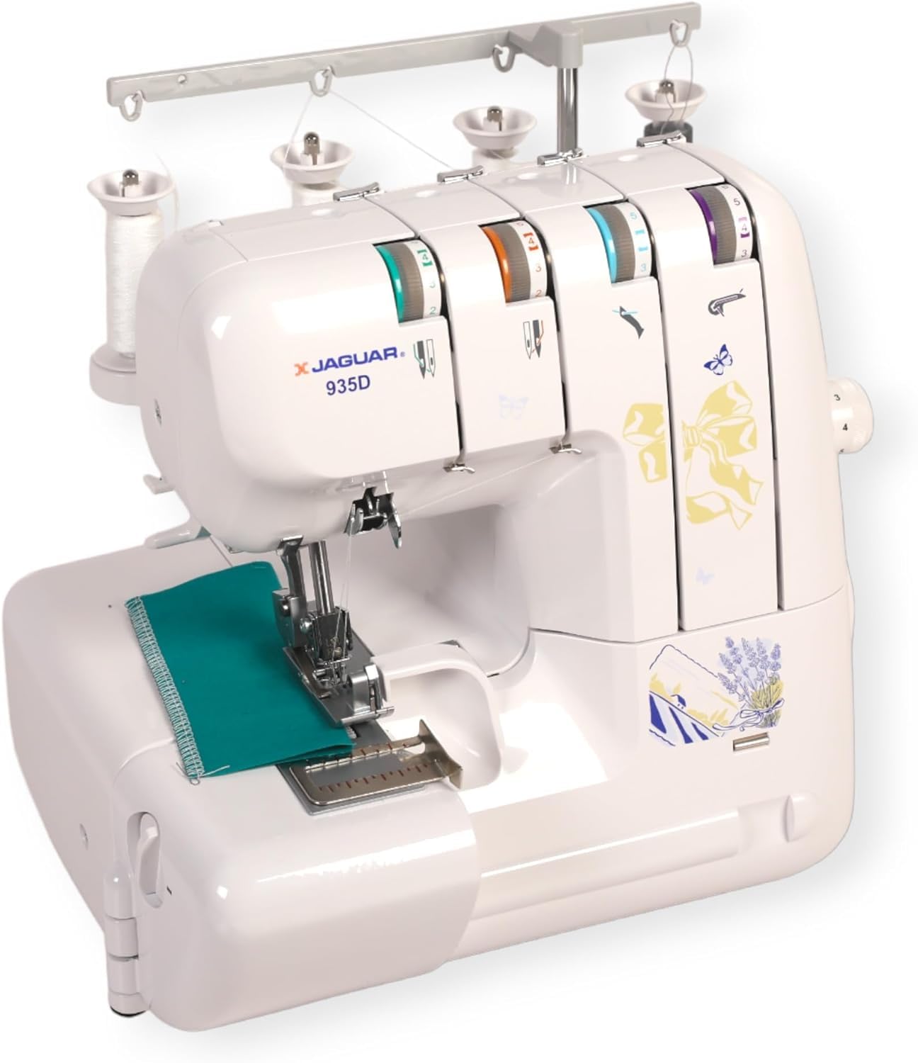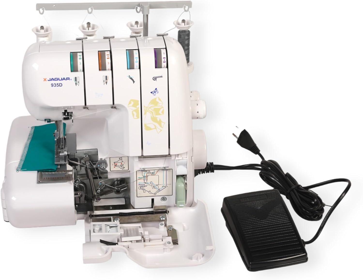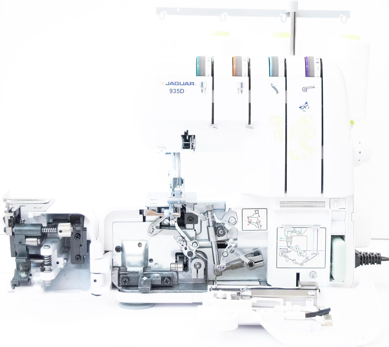 Compared to those, the Jaguar 935D has to earn its higher price with convenience and specs. The open front threading system, foot pressure regulator, and adjustable cutting width are its strongest points.