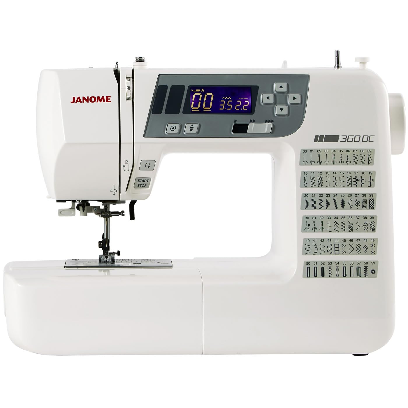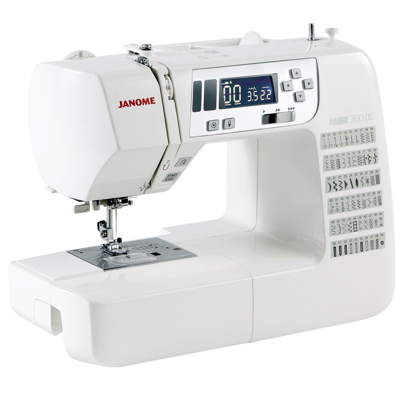 Moreover, the machine incorporates Janome's exclusive superior feed system, ensuring smooth and even fabric feeding. This feature is particularly beneficial when working with layered fabrics, common in quilting, as it reduces the risk of fabric shifting. The 360DC also features an easy-to-read LCD screen, allowing users to select stitches and adjust settings with ease, enhancing overall usability.