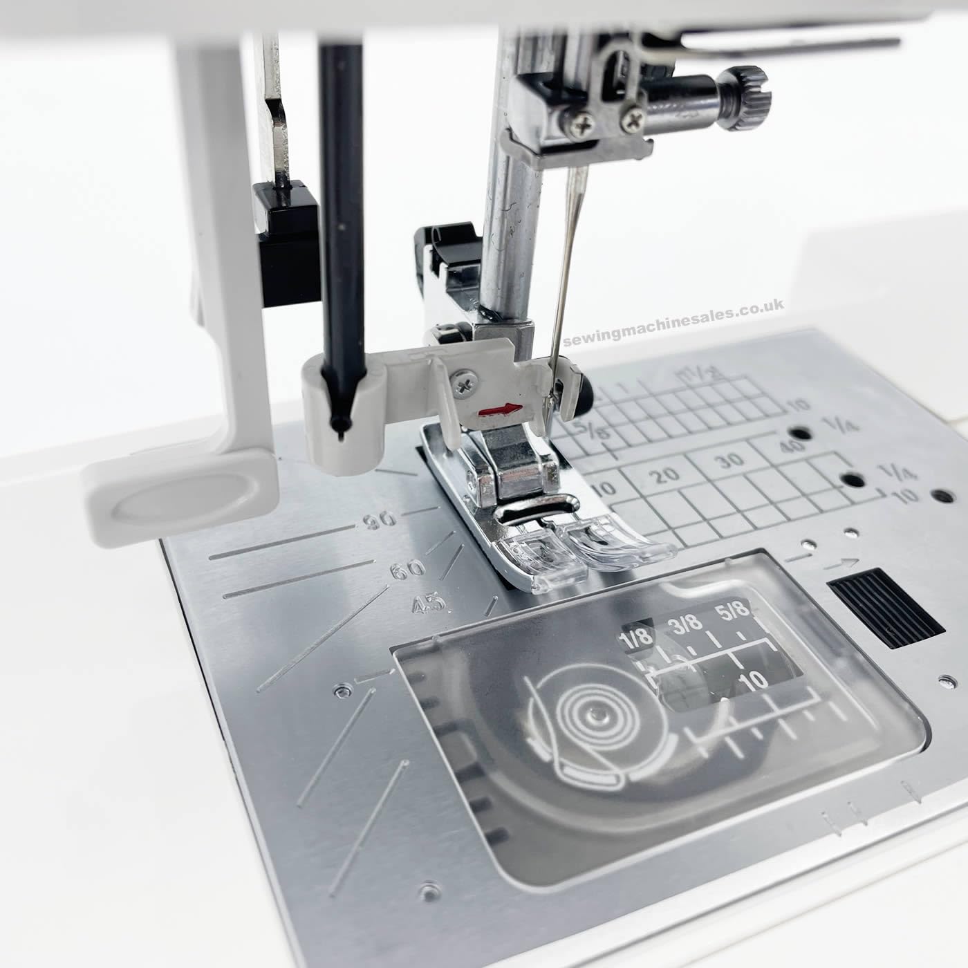 - 60 stitch options, including six one-step buttonholes, catering to diverse sewing needs.