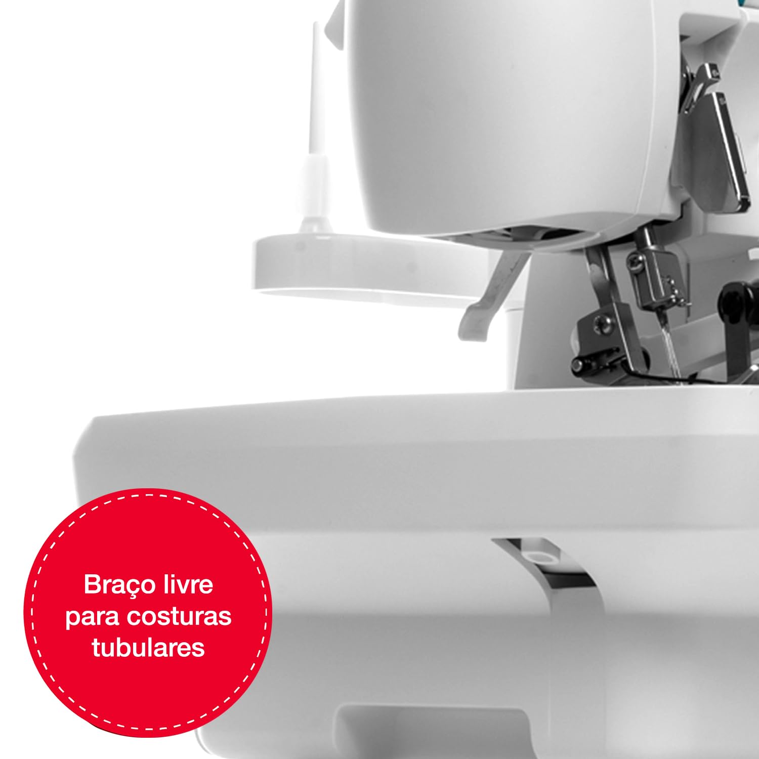 - Free arm improves access for cuffs, sleeves, and other narrow circular sewing areas.