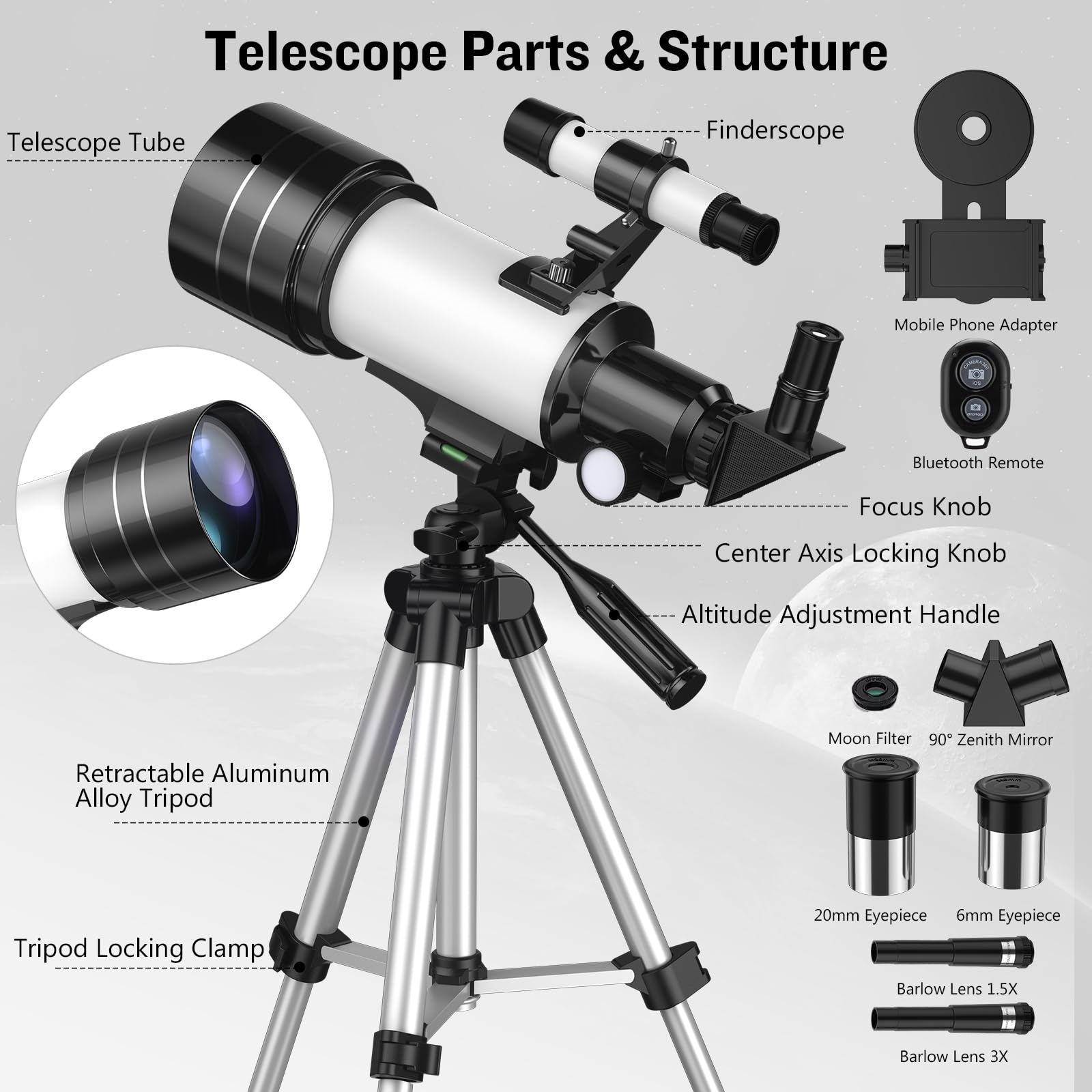 - Limited Aperture: The 70 mm aperture may restrict visibility of fainter objects, especially in light-polluted areas.