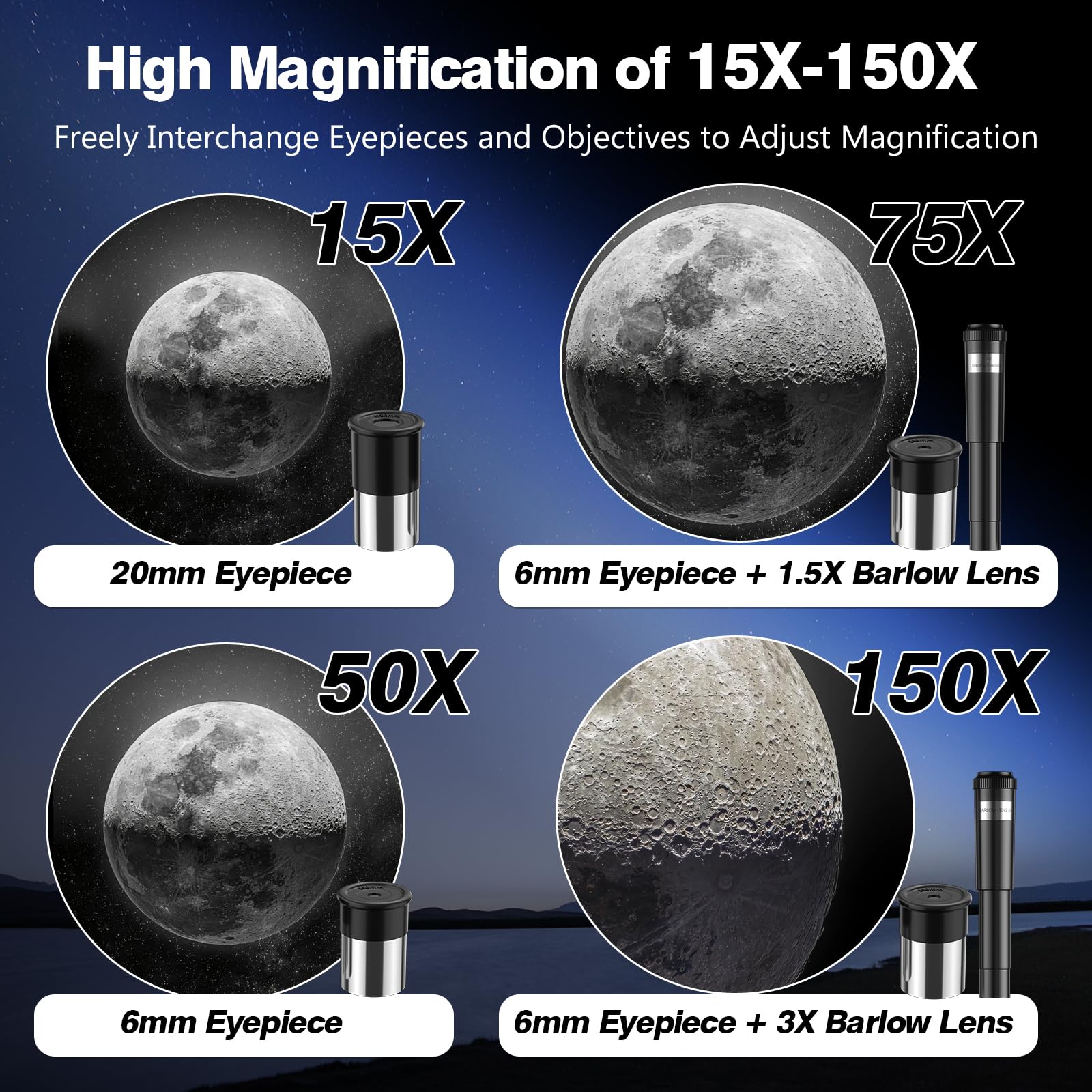 - Flexible Magnification: Offers a range of 15x to 150x, suitable for various celestial observations.