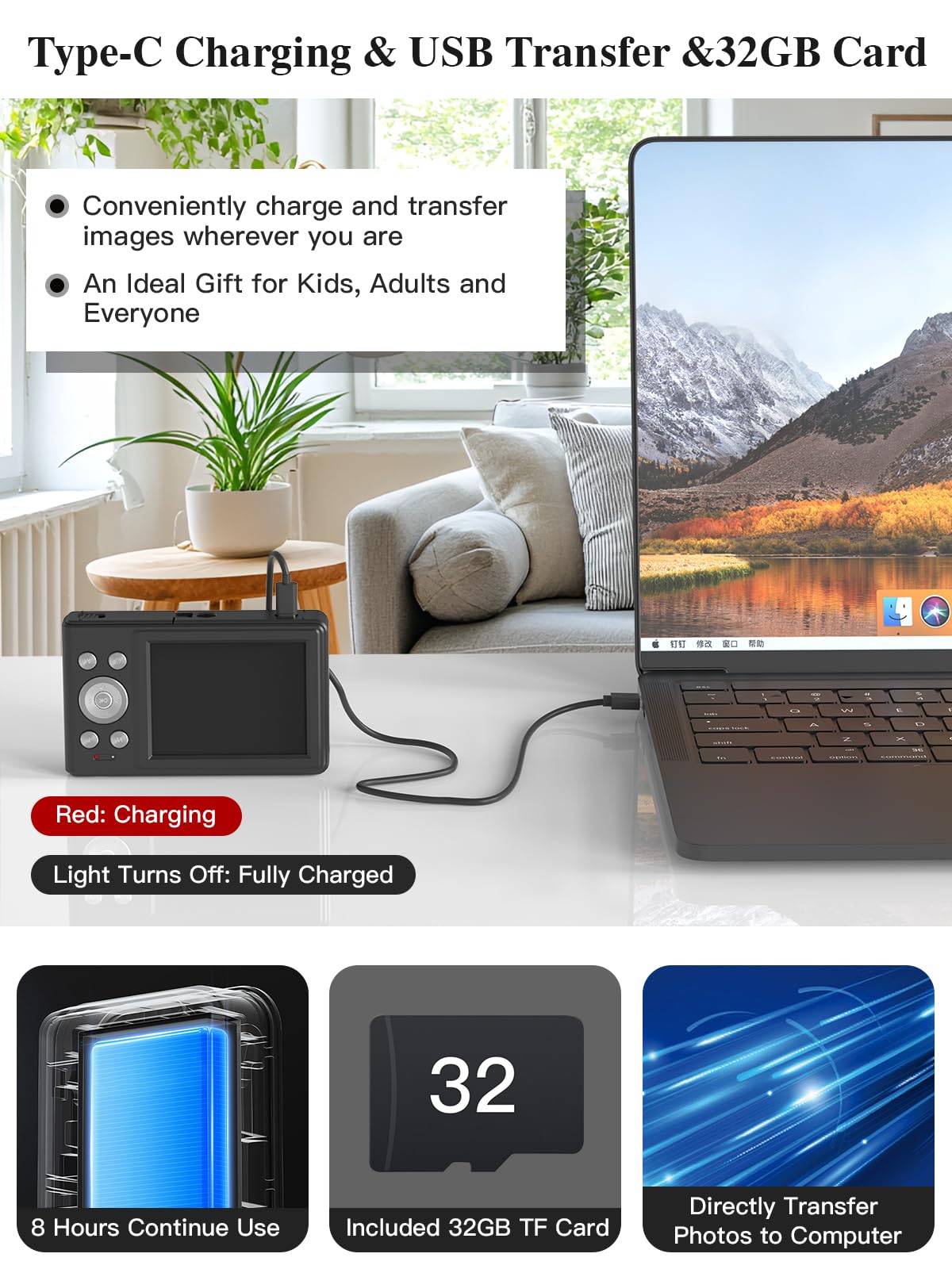 Enthusiastic buyers frequently praise the camera's user-friendly design and portability, highlighting its ease of use for children. The inclusion of additional accessories, such as the 32GB TF card and batteries, is often noted as a significant bonus.