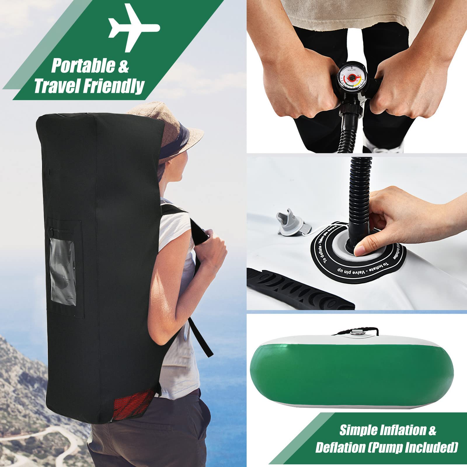 - Quick inflation and deflation valve for easy setup and packing.