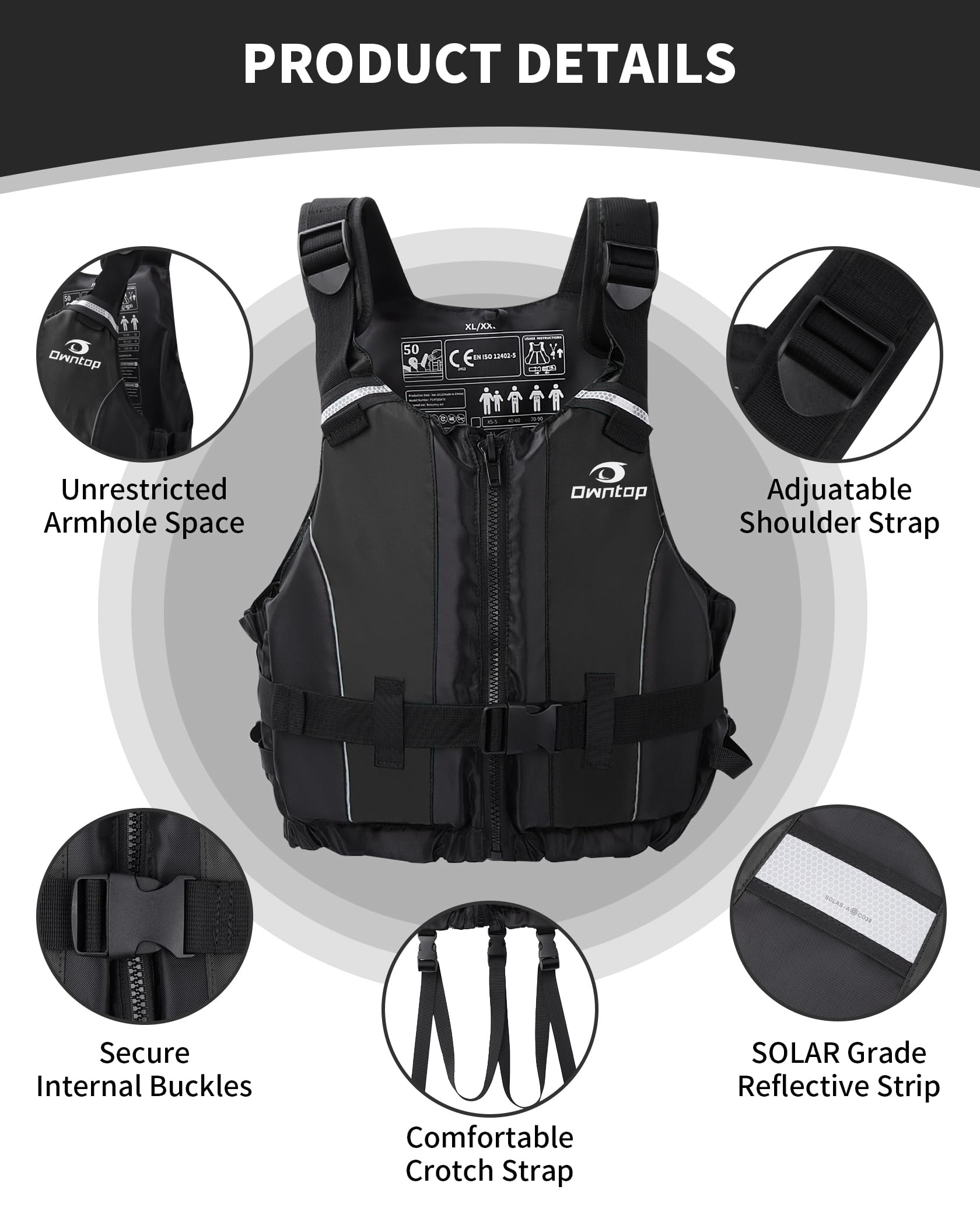 - EN ISO 12402-5 compliance gives a clear safety standard for a 50N buoyancy aid.