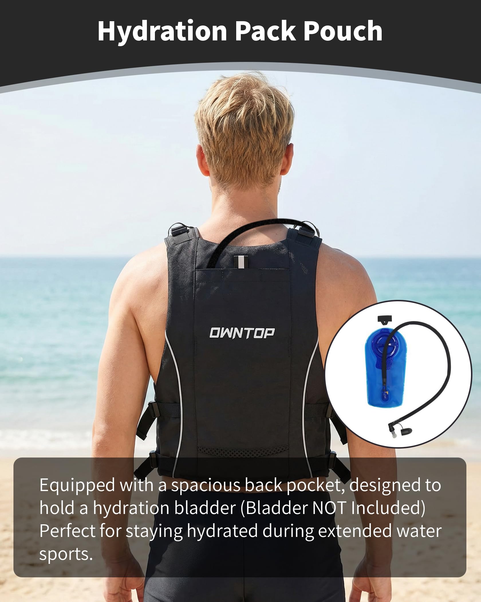 Owntop says the vest is made from sturdy, quick-drying nylon with an inner neoprene lining. That combination suggests a comfortable, water-friendly construction rather than a heavy, bulky jacket. Quick-drying nylon is a good fit for mixed-use watersports because it should be easier to live with after repeated wet sessions, while neoprene lining usually helps the vest sit more comfortably against the body.